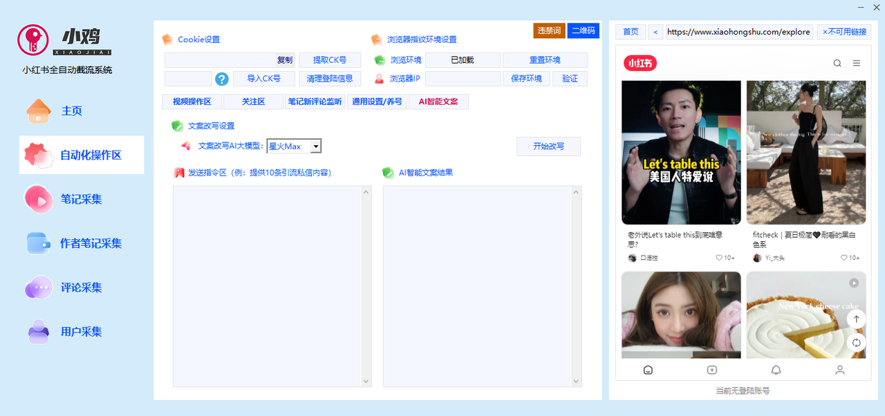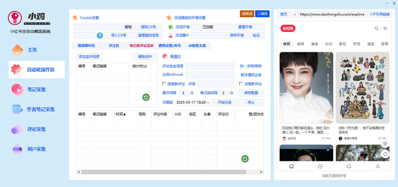 小鸡AI 小红书全自动获客系统-自动化评论区采集截流|监听新评论|UID关注|自动评论||自动点赞|自动截流养号为一体的小红书综合获客工具